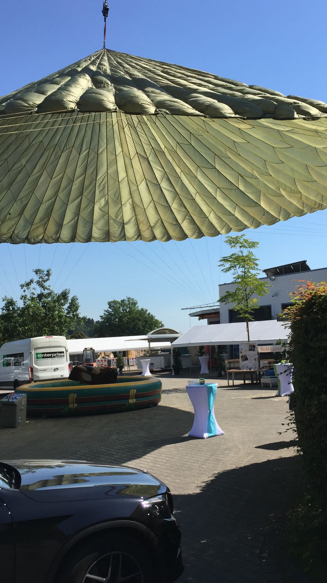 500 geladene Gäste konnten es sich im Schatten des Fallschirms der Firma Syrek gemütlich machen, um an dem bunten Treiben auf dem Hof teilzunehmen.