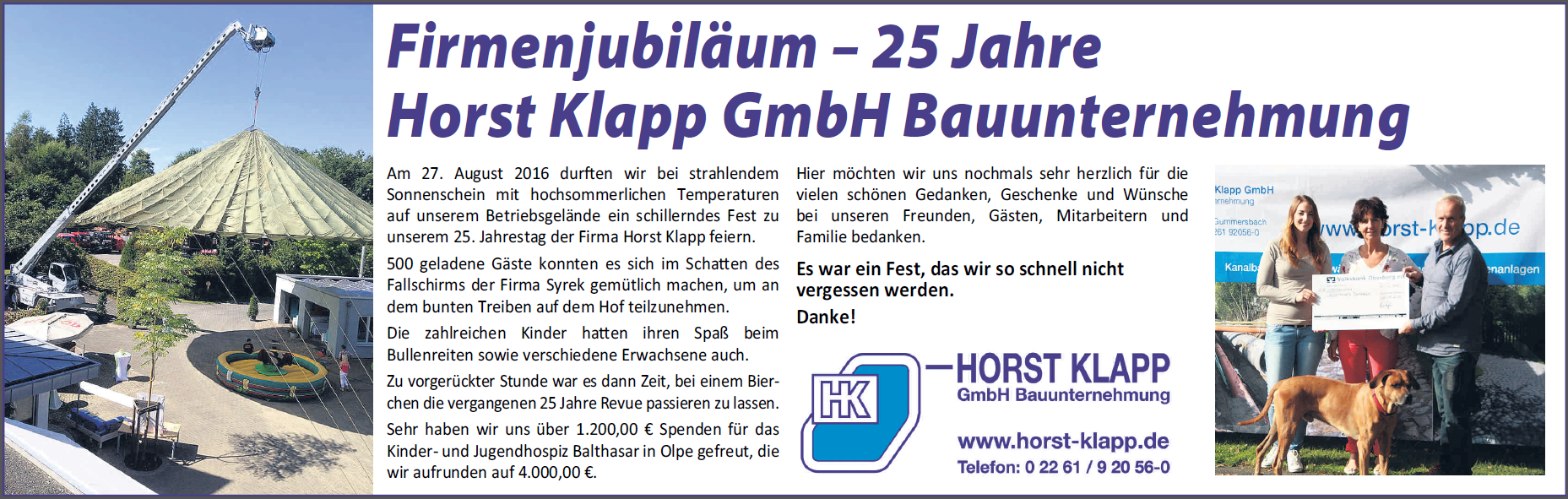 Firmenjubiläum – 25. Jahre Horst Klapp GmbH Bauunternehmung